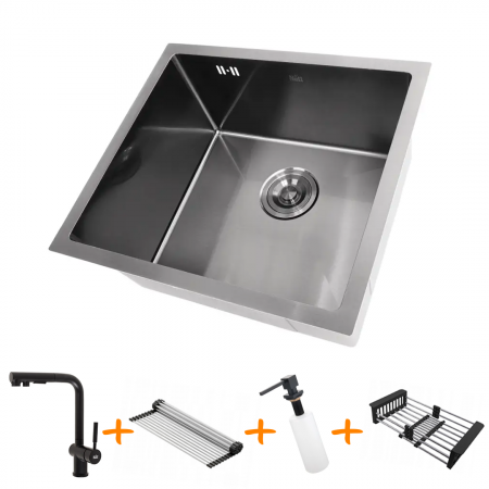 Комплект черной мойки на кухню и смеситель из нержавеющей стали NB-5045