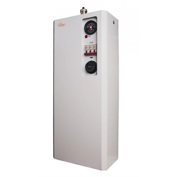 Котел электрический настенный ТМ Warmly Group серии «Classic Мg», предназначенные для отопления разных помещений площадью до 150 м.кв. Котел может работать как основной, так и вспомогательный, источник нагрева теплоносителя в системе отопления. Котлы серии «Classik Мg» не критические к снижению напряжения в электрической сети, и кратковременных перегрузок. Серия «Classik Мg» комплектуется терморегулятором (плавная регуляция температуры теплоносителя от 30 до 90 гр.), аналоговым термометром, двумя/тремя степенями мощности, клеммой колодкой, для подключения комнатного терморегулятора, циркуляционной помпой и группой безопасности. Котел имеет две степени защиты от перегрева, подключение к сети 220-380в. или универсальное (220в/380в) в зависимости от мощности котла.