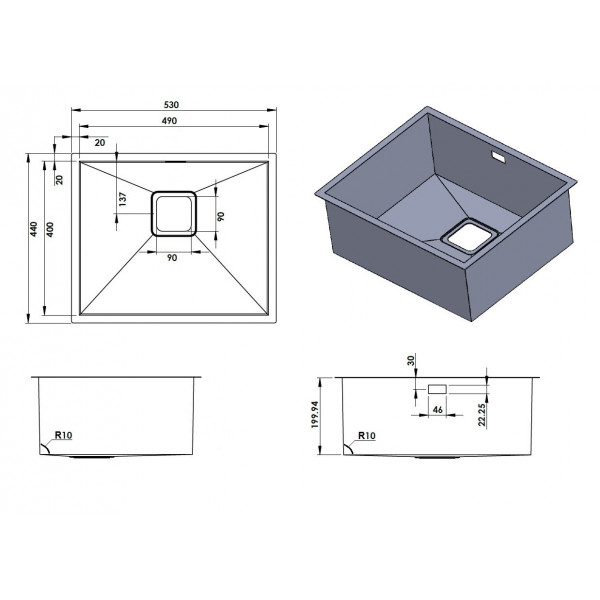 Кухонная мойка Fabiano Quadro 53 R10 (53x44) 1,20 мм 8216.401.0073