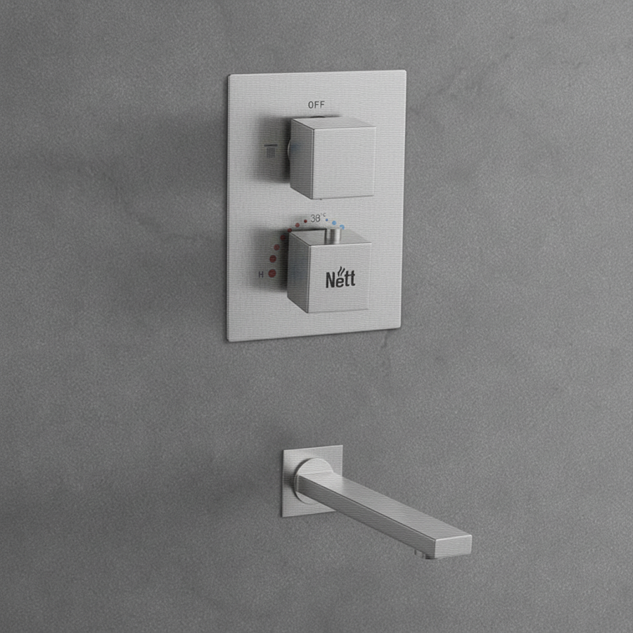 Душевая система Nett в оттенке никель выглядит дорого и аккуратно, отлично сочетается с серой плиткой, светлыми интерьерами и современной сантехникой. Это универсальный цвет, который придаёт пространству премиальный вид и остаётся актуальным вне трендов.