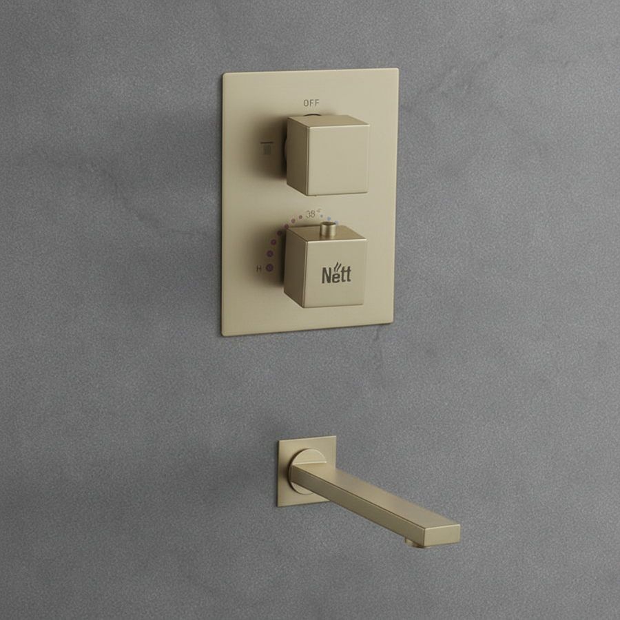 Душевая система Nett в золотом оттенке придаёт ванной комнате премиальный вид и ощущение стиля с первого взгляда. Она идеально сочетается с мраморной плиткой, тёмными и светлыми интерьерами, создавая эффект «дорогого» дизайна без лишних деталей. Золото — это про эстетику, статус и гармонию в каждой линии.