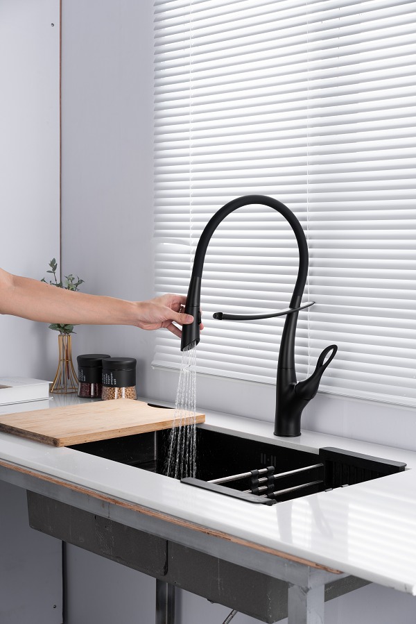 Черный цвет смесителя, кроме элегантности, обеспечивает тишину в использовании, не добавляя дискомфорта в помещении.