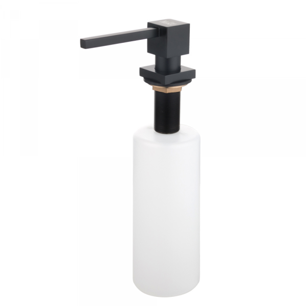 Дозатор для моющего средства Nett устанавливается на кухонную мойку или на столешницу, диаметр отверстия 30мм, и позволяет освободить пространство рядом с мойкой от ёмкостей с моющими средствами.Головка дозатора выполнена из нержавеющией стали 304 марки с черным матированным покрытием.
