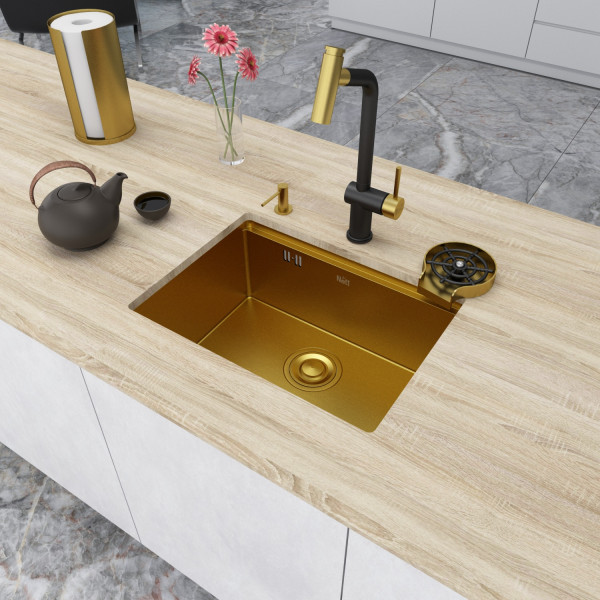 Золотая мойка под столешницу из нержавейки кухонная станция Nett NG-5742
