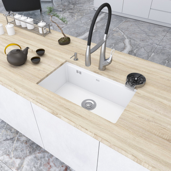 Белая мойка на кухню под столешницу 1.5 мм из нержавеющей стали Nett NW-7042