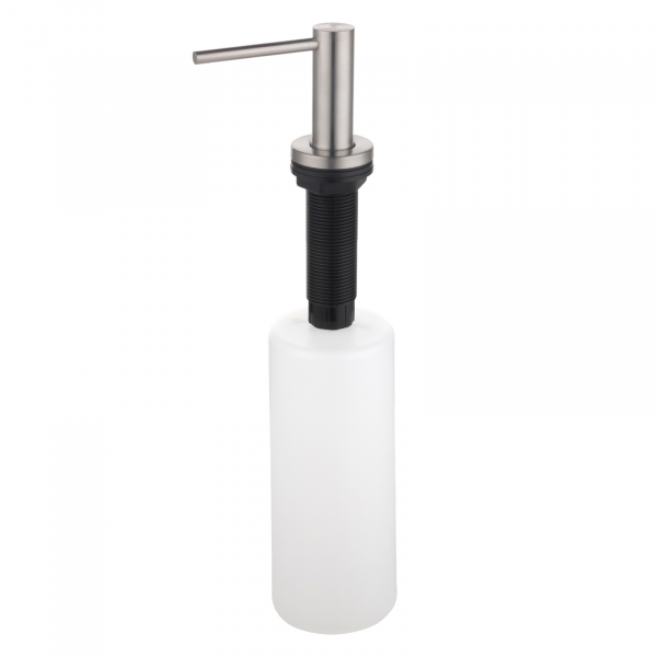 Дозатор для моющего средства Nett устанавливается на кухонную мойку или на столешницу, диаметр отверстия 30мм, и позволяет освободить пространство рядом с мойкой от ёмкостей с моющими средствами.Головка дозатора выполнена из нержавеющией стали 304 марки с брашированным покрытием.