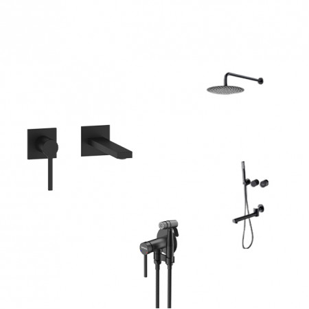 Комплект черной душевой системы с термостатом, смесителя на умывальник и гигиенического душа Nett SSB-24 + VB-22 + Gappo G7290-6