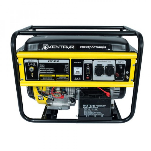 Бензинова мініелектростанція Кентавр КБГ-505Е здатна забезпечити стабільним змінним електричним струмом напругою 220 В у тих місцях, де централізовану електричну мережу з різних причин використовувати неможливо. Відмінною рисою цієї моделі є електричний стартер, що забезпечує легкий запуск двигуна.
