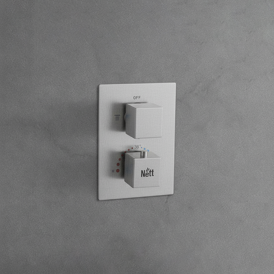 Душевая система Nett в оттенке никель выглядит дорого и аккуратно, отлично сочетается с серой плиткой, светлыми интерьерами и современной сантехникой. Это универсальный цвет, который придаёт пространству премиальный вид и остаётся актуальным вне трендов.