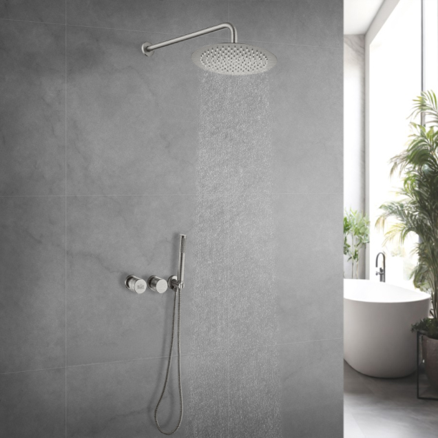 Душевая система Nett в оттенке никель выглядит дорого и аккуратно, отлично сочетается с серой плиткой, светлыми интерьерами и современной сантехникой. Это универсальный цвет, который придаёт пространству премиальный вид и остаётся актуальным вне трендов.