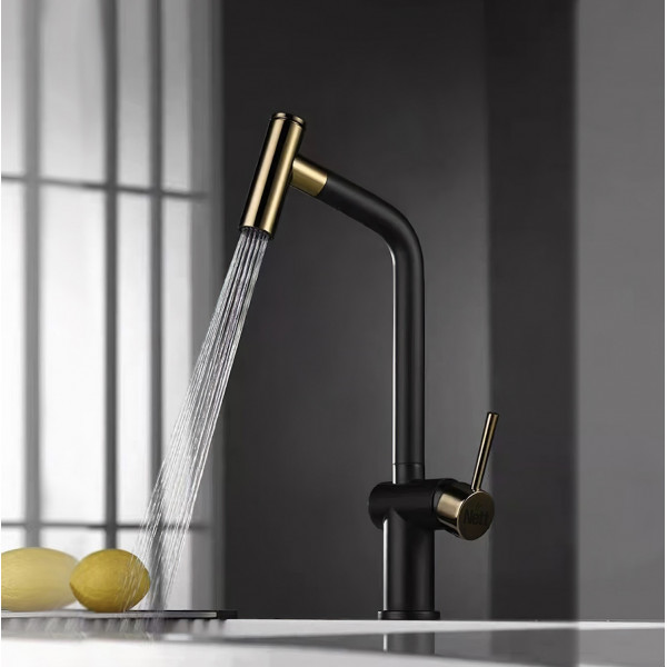 Золотой смеситель для кухни с выдвижным изливом Nett FG-44