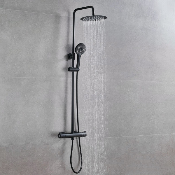Черная душевая система с термостатом наружного монтажа для душа Nett SSB-24