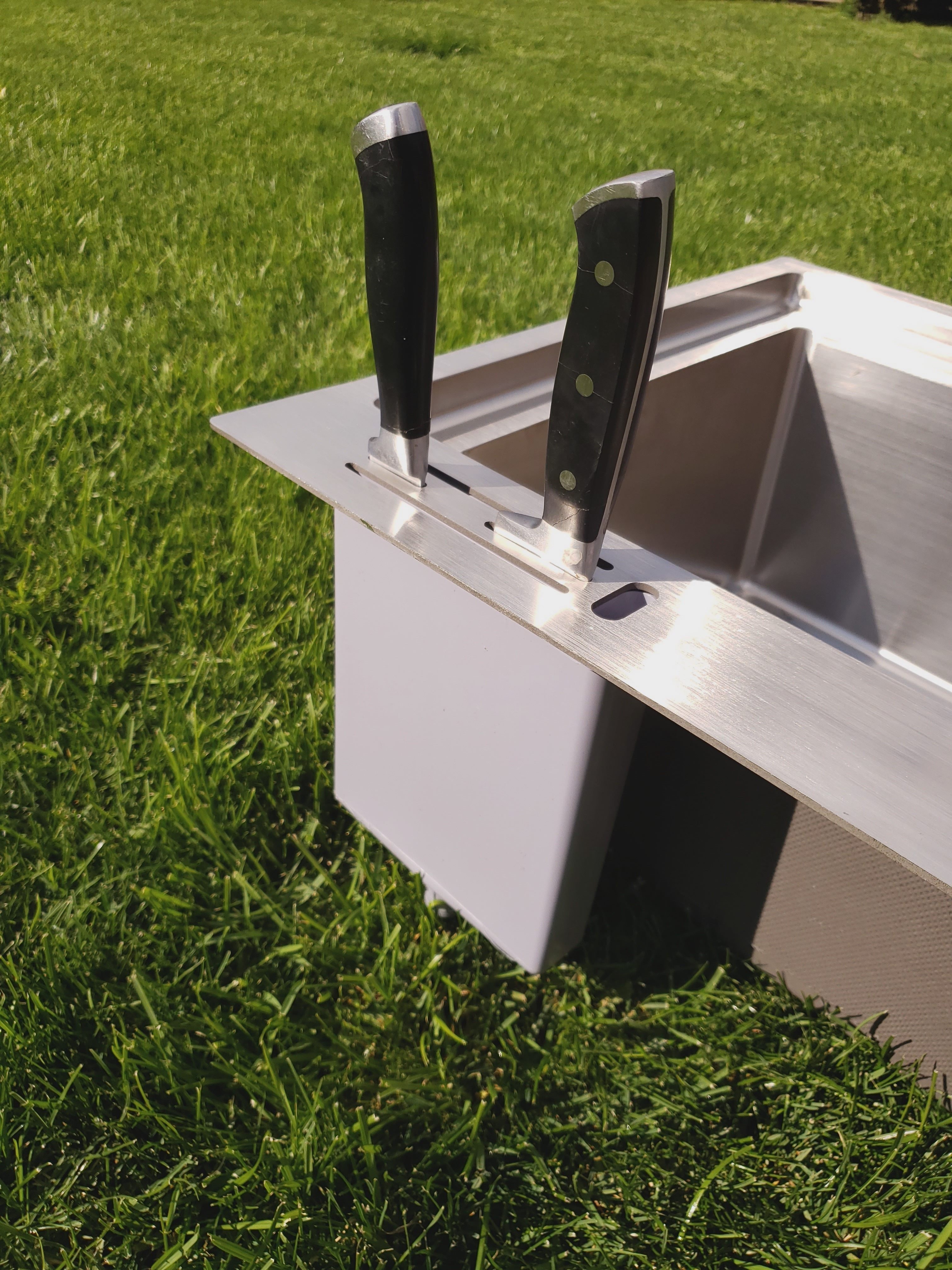 Уникальная особенность нашей мойки – встроенные отверстия для ножей. Теперь вам не придется покупать отдельные подставки и заботиться о чистоте вашей рабочей поверхности.