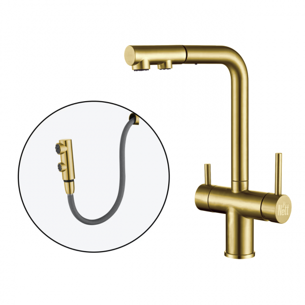 Комбинированный смеситель на кухню золотой 4в1 Nett FWG-33