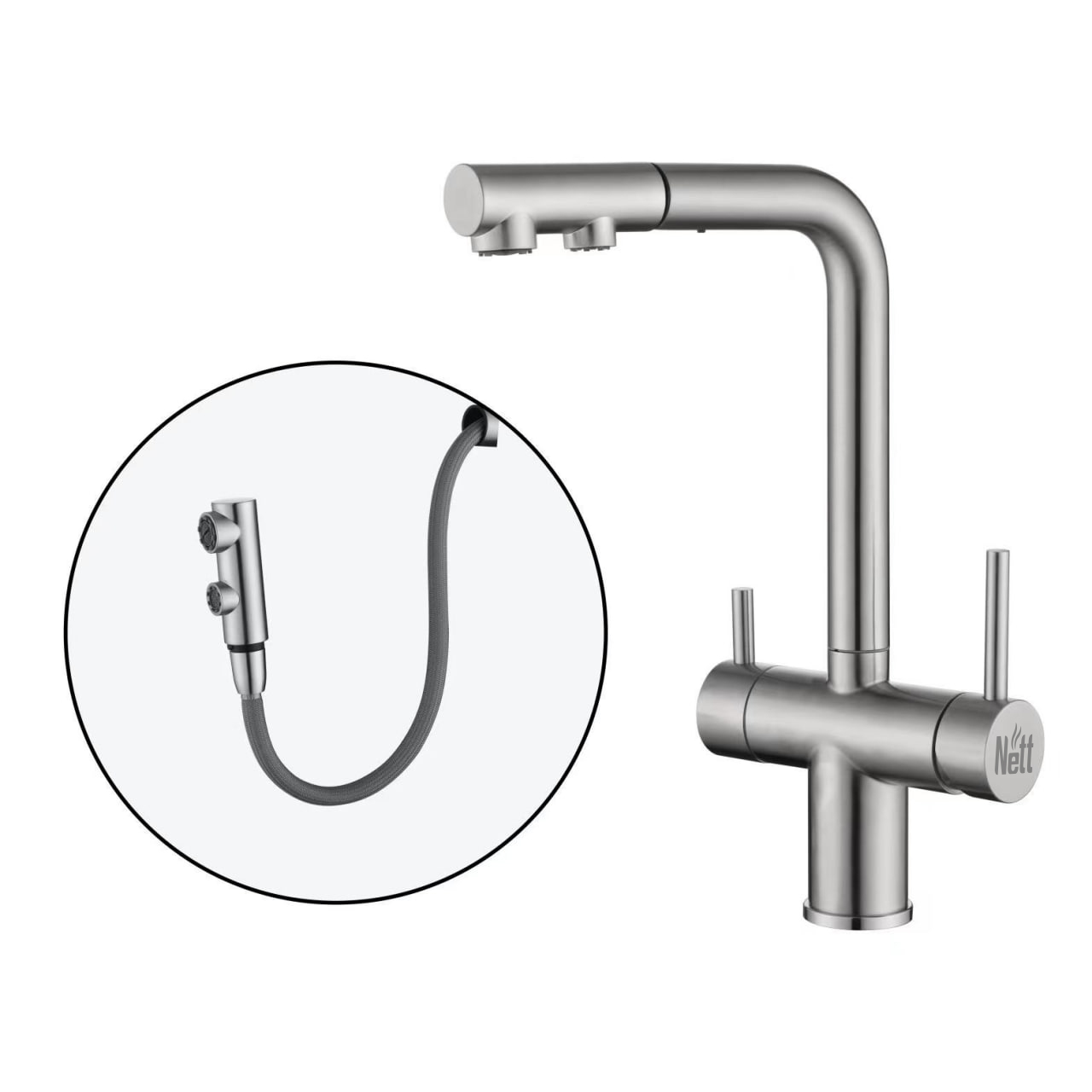 - Многофункциональность крана с встроенным фильтром и выдвижным носиком