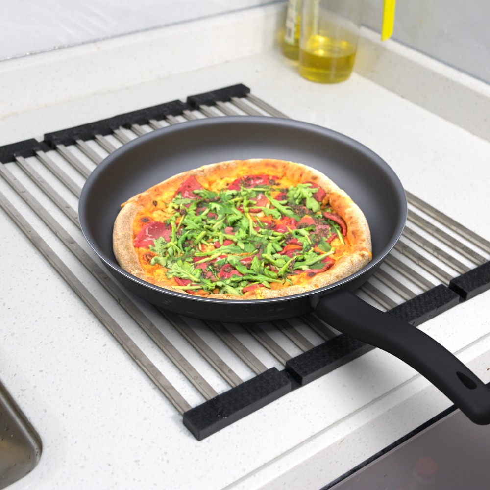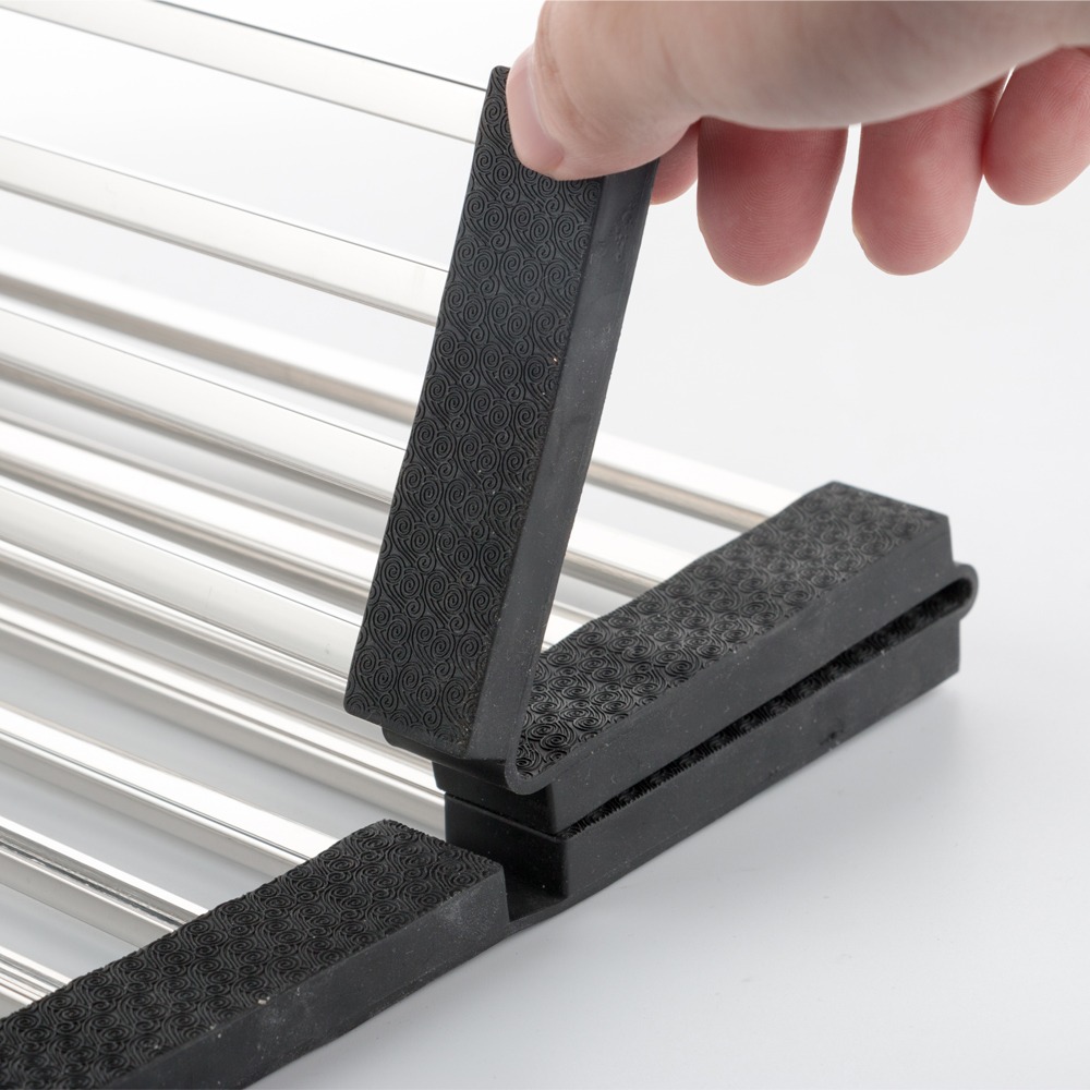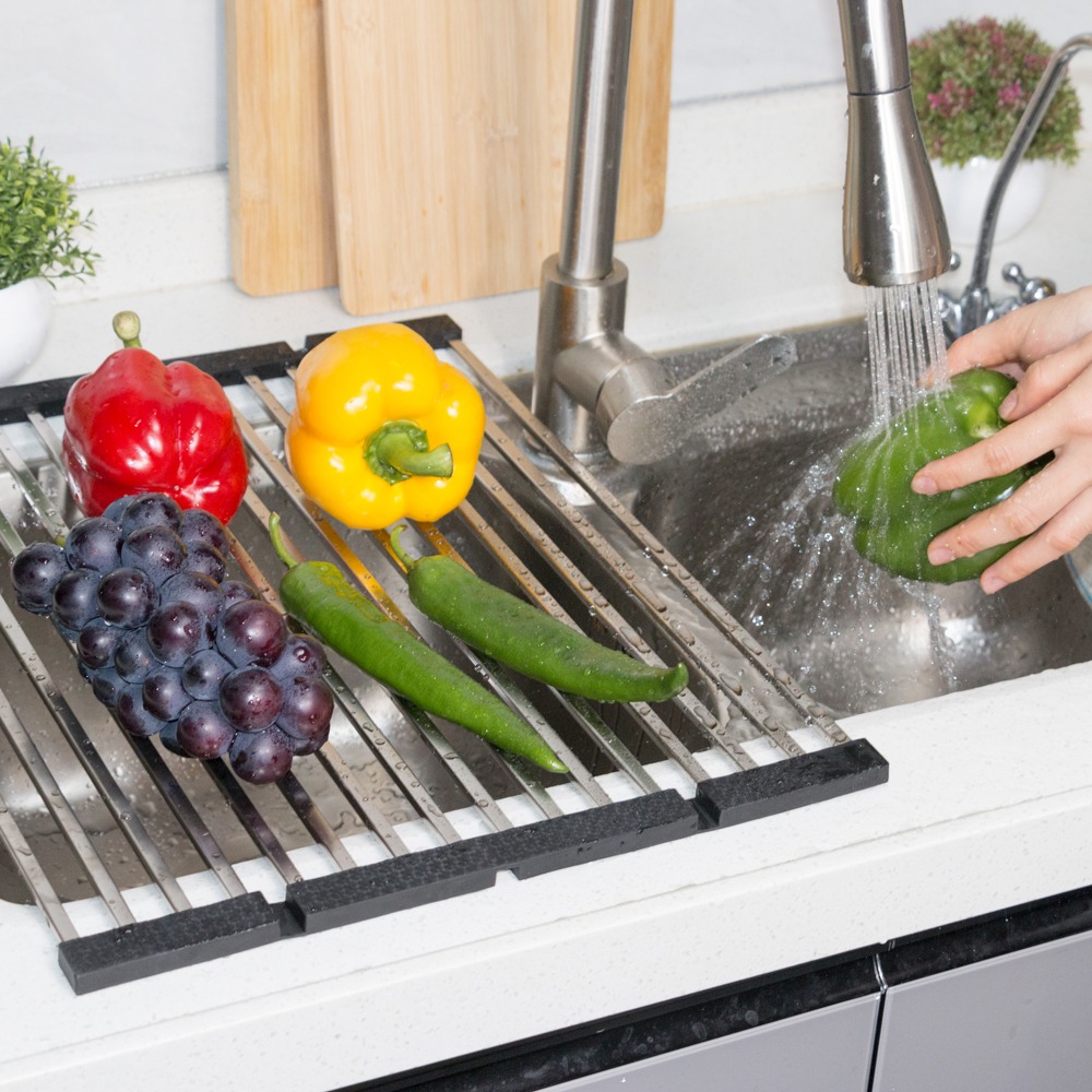 Сушка изготовлена из высококачественной нержавеющей стали с силиконовыми бортиками, которая поможет вам легко и просто сушить  посуду,фрукты, овощи и так же создаст безопасную поверхность для слива после мытья.
