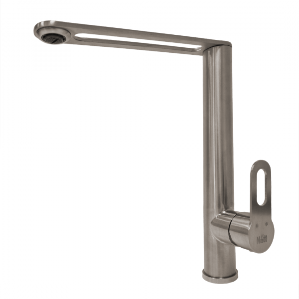 Кран изготовлен из нержавеющей стали марки 304, которая обеспечивает ему долговечность и сохраняет эстетический вид на протяжении лет.