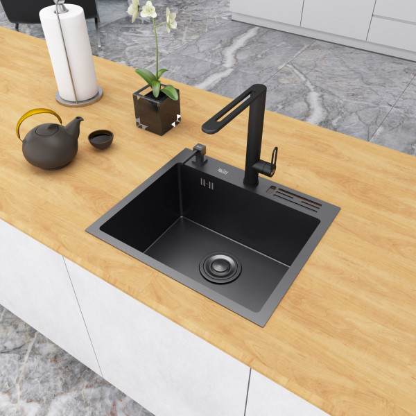 Черная кухонная мойка 45 см накладная из нержавейки Nett NВ-5245