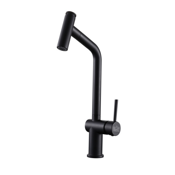 Чорний змішувач для кухні з висувним виливом Nett FBB-44