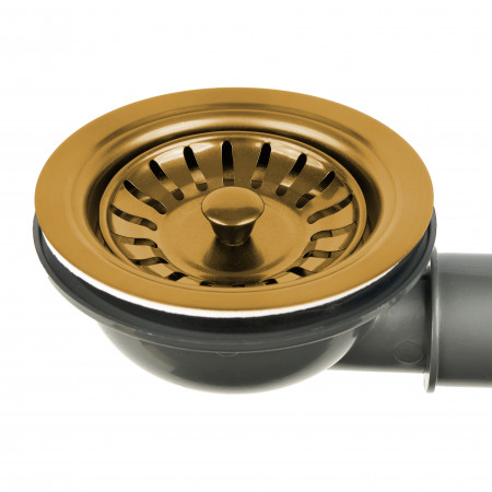 Золотой сифон для мойки на кухню из нержавейки с переливом и подключением к посудомойке DMG-110