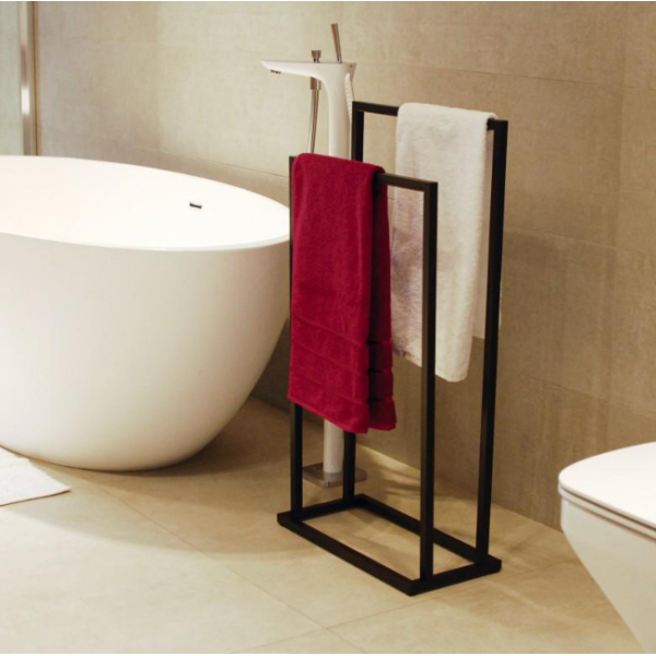 Отдельностоящая вешалка для полотенец. Изготовлен из стали, выкрашенной в черный цвет.