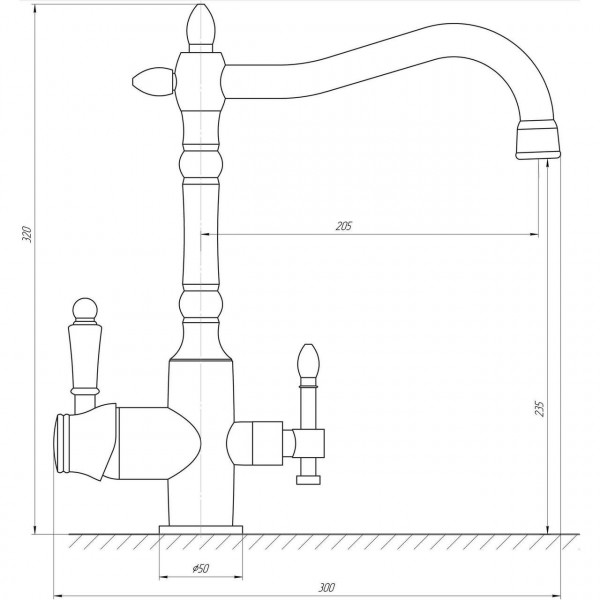 Смеситель для кухни под осмос Globus Lux LAZER GLLR-1000-6-MARONE
