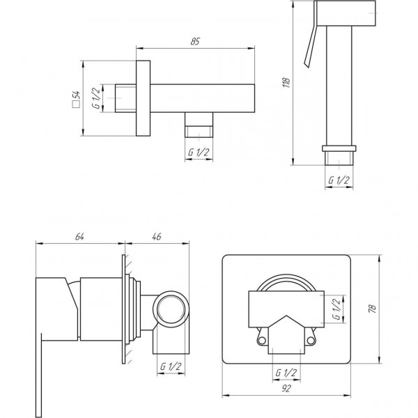 Смеситель гигиенический TOPAZ SARDINIA-TS-G 08735-H20 встроенный